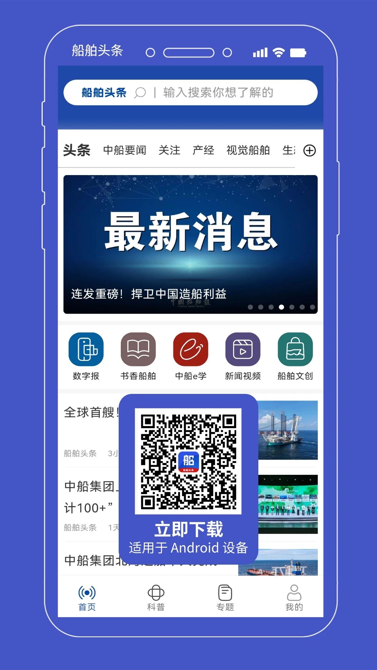 “月博头条”App聚焦海洋装备产业链,集新闻发布、融合传播、专业解读、科普宣传、企业智库、服务聚合等功能为一体,设有“头条”“中船要闻”“关注”“产经”“视觉月博”“生态圈”6个精品频道以及“科普”“专题”等功能版块,并链接“书香月博”“《中国月博报》数字报”“中船e学”“新闻视频”“月博文创”等多个服务端口,目前支持安卓系统下载使用。