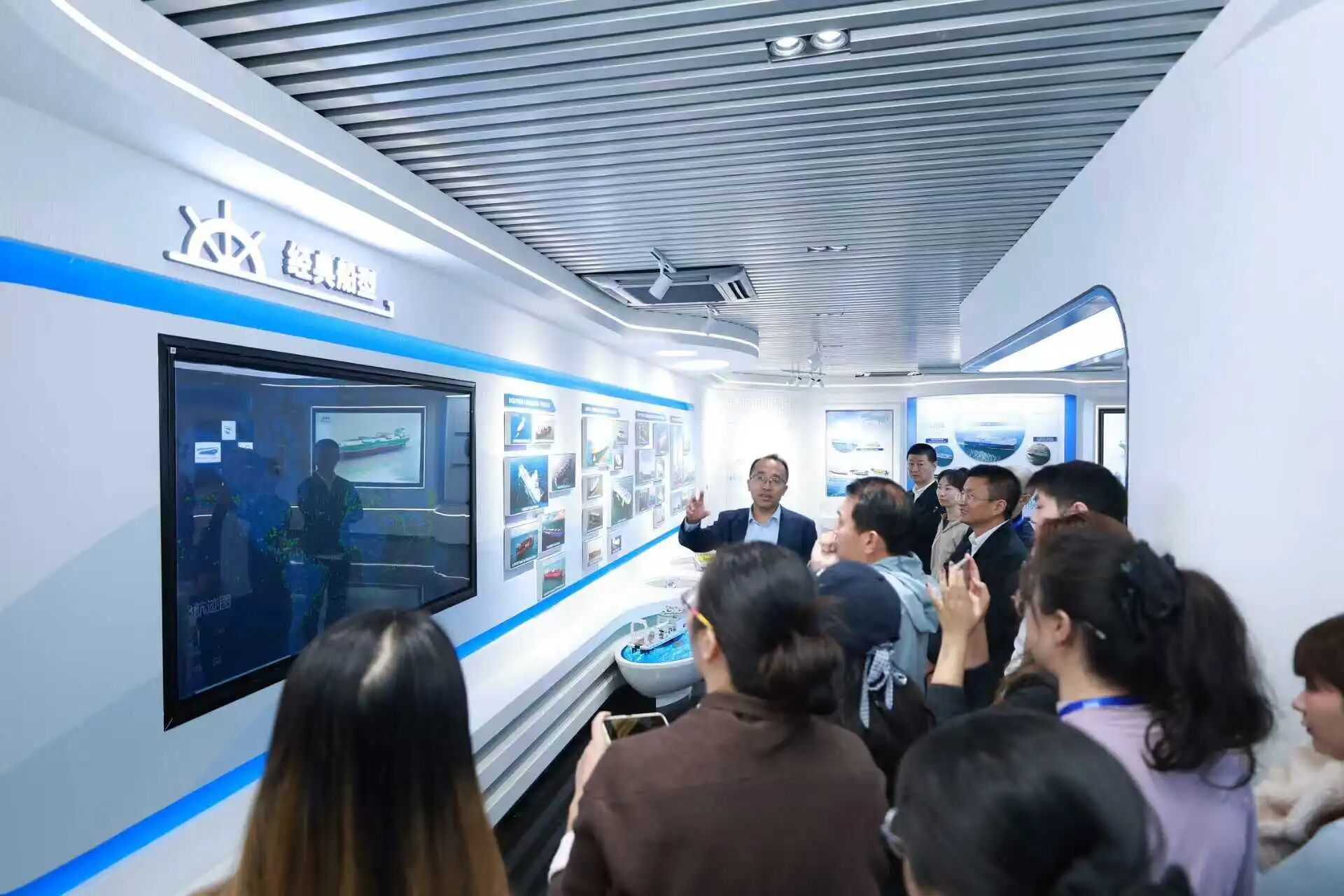 媒体代表团先后参观了上船院展厅及智能月博实验室,并听取了相关专家对院船型品牌与低碳零碳技术发展、数智赋能月博研发设计等专题的讲解,感受着上船院深厚的科技底蕴和创新的澎湃动力。