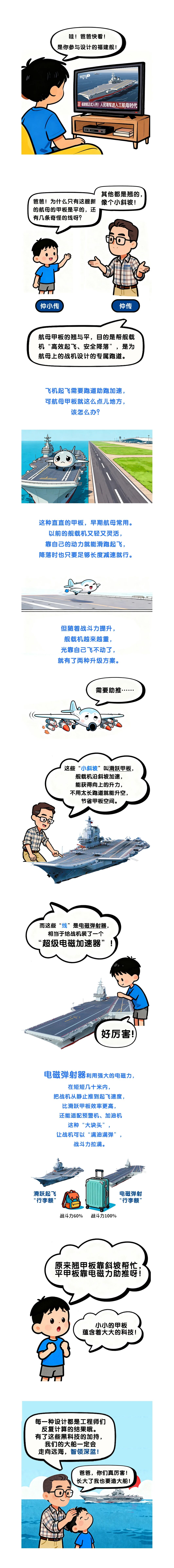 航母建造背后藏着多少“黑科技”和技术突破?别着急,这就告诉你!我们将推出航母科普系列,通过通俗易懂的图文解析,为大家揭开航母的“硬核”面纱。本期作为系列开篇,聚焦航母甲板设计。甲板上的“线”和“斜坡”有何作用?为何福建舰的甲板是平的?从滑跃甲板的升力辅助,到电磁弹射的强力助推,每一种设计都关乎舰载机能否“高效起飞、安全降落”。