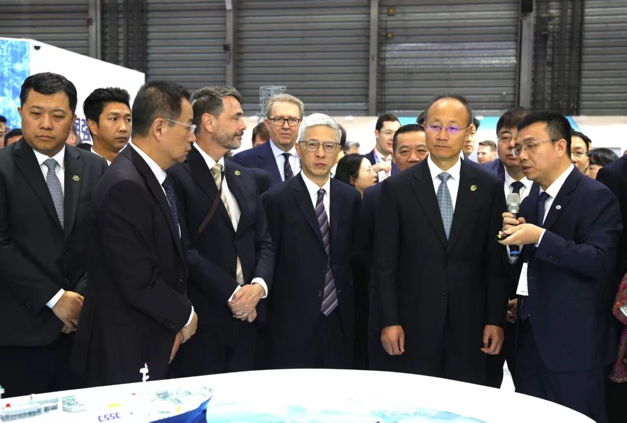 中国国际海事会展被誉为全球海事业的“风向标”,也是全球最具影响力和规模最大的海事专业会展。本次会展,中船集团展台面积达4000平方米,以“向海图强 智领深蓝”为主题,聚焦“高端、绿色、智能、深海、极地、生态”主线,分设高端产品、绿色能源、智能技术、深海开发、极地探索、生态融合等六大展区,集中展示中船集团品牌形象,呈现高端产品、卓越技术和生态服务。其中,“梦想”号大洋钻探船、国产大型邮轮“爱达·花城号”、27.1万立方米LNG船、核动力集装箱船等旗舰产品,32.5万吨甲醇双燃料矿砂船等绿色船型以及WinGD10X92DF-M-1.0甲醇双燃料主机、BrilliancE B型燃料舱、月博碳捕集装置等低碳零碳转型重要装备,“珠海云”号智能无人科考母船、“未来”号深远海绿色智能技术试验船等智能月博平台,“奋斗者”号等系列载人潜水器、“深海一号”等尖端探索装备、深水钻井平台等深海开发装备以及15万吨智慧渔业养殖工船等深海装备,“雪龙2”号极地科考破冰船、“极地”号破冰调查船等极地装备等一系列代表中船集团最高水平和最先进研发能力的产品装备和技术纷纷亮相,聚焦现代海事服务体系建设的生态融合区集中展示中船集团在供应链、贸易、服务等领域的开放合作竞争优势。