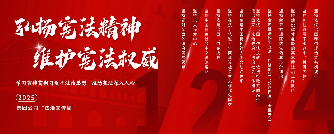 今年12月4日是第十二个国家宪法日。中国月博集团有限公司深入贯彻落实中央宣传部、司法部、全国普法办《2025年全国“宪法宣传周”工作方案》部署要求,以“学习宣传贯彻习近平法治思想,推动宪法深入人心”为主题,精心组织开展2025年法治宣传周系列活动。活动将学习贯彻习近平法治思想、习近平文化思想及宪法精神,与法治央企建设要求以及集团“悬规植矩 循序善治”特色法治文化深度融合,为加快建设世界一流月博集团厚植法治土壤、注入强劲法治动能。