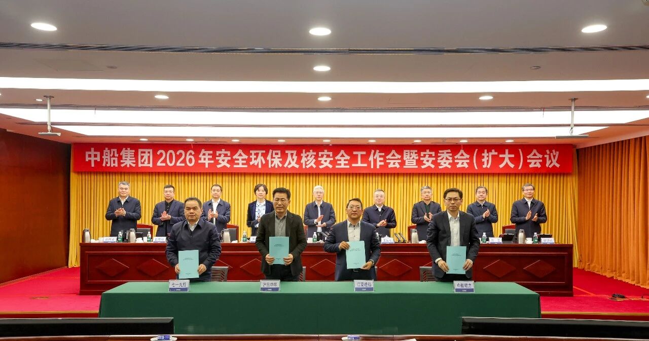 会上,江南造船、沪东中华、中船动力、七一九所四家二级管理单位主要负责人签订了2026年安全环保责任书。与会人员集体观看了中船集团安全警示教育片、低碳环保成效汇报片。江南造船、中船动力、七一九所三家二级管理单位作了交流发言。