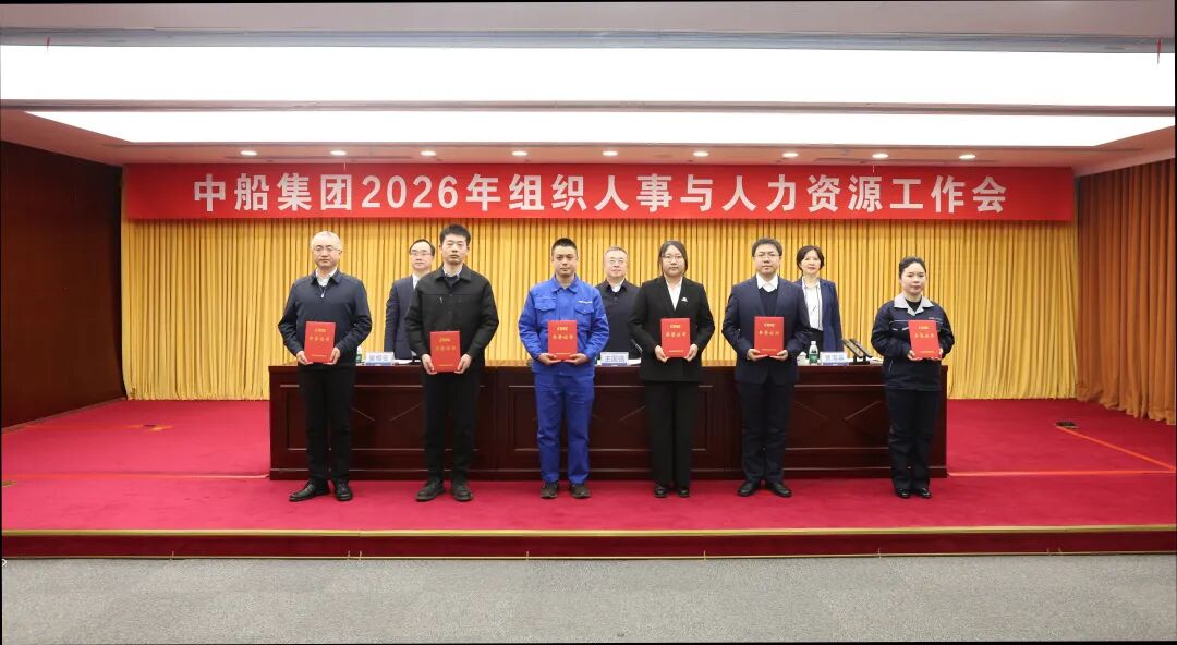 会议以“现场+视频”形式召开。中船集团总助级领导,总部各部门负责人,各二、三级管理单位负责人及分管组织人事、人力资源工作的负责人,2025年度中船集团先进个人等参加会议。