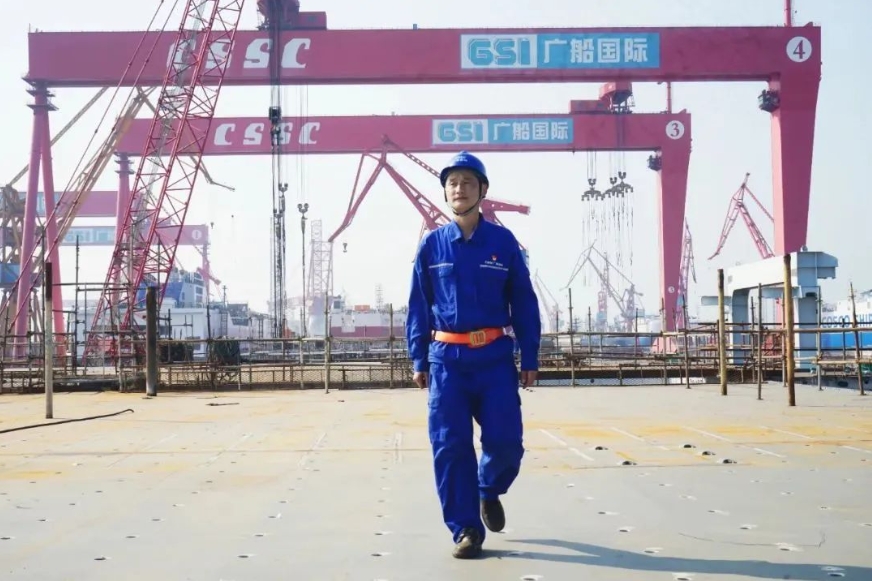中船集团、智领深蓝。在广船国际高质量发展向更高的山峰进发的征途上,冯文虎正手握焊枪,以一位大国工匠的担当,在钢与火的交汇中,篆刻着建设海洋强国的铮铮誓言。