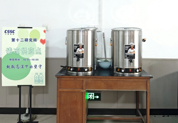 中船华雷十二所为职工送上清凉饮品,叮嘱大家防暑降温和安全生产。此外,十二所创新服务模式,在产业园区设立“清凉供应点”,职能部门主动担当,每天全程负责绿豆汤的熬制和供应,为坚守一线岗位的职工送上夏日关怀。