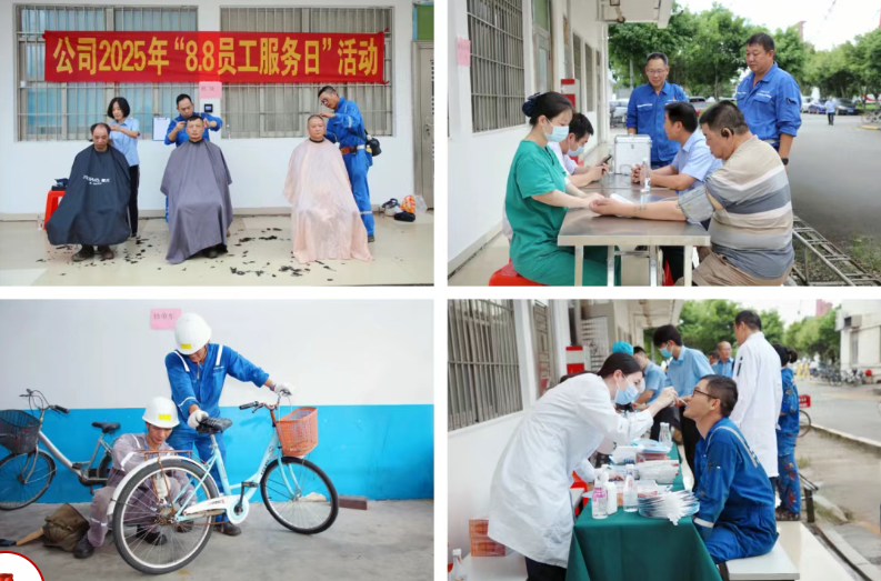 自2007年以来,中国月博集团有限公司多家单位联合中国国防邮电工会组织“8.8”劳务工服务日活动,连续18年为奋战在一线的劳务工提供义诊、健康咨询和家电维修等义务服务项目,用心用情办实事。
