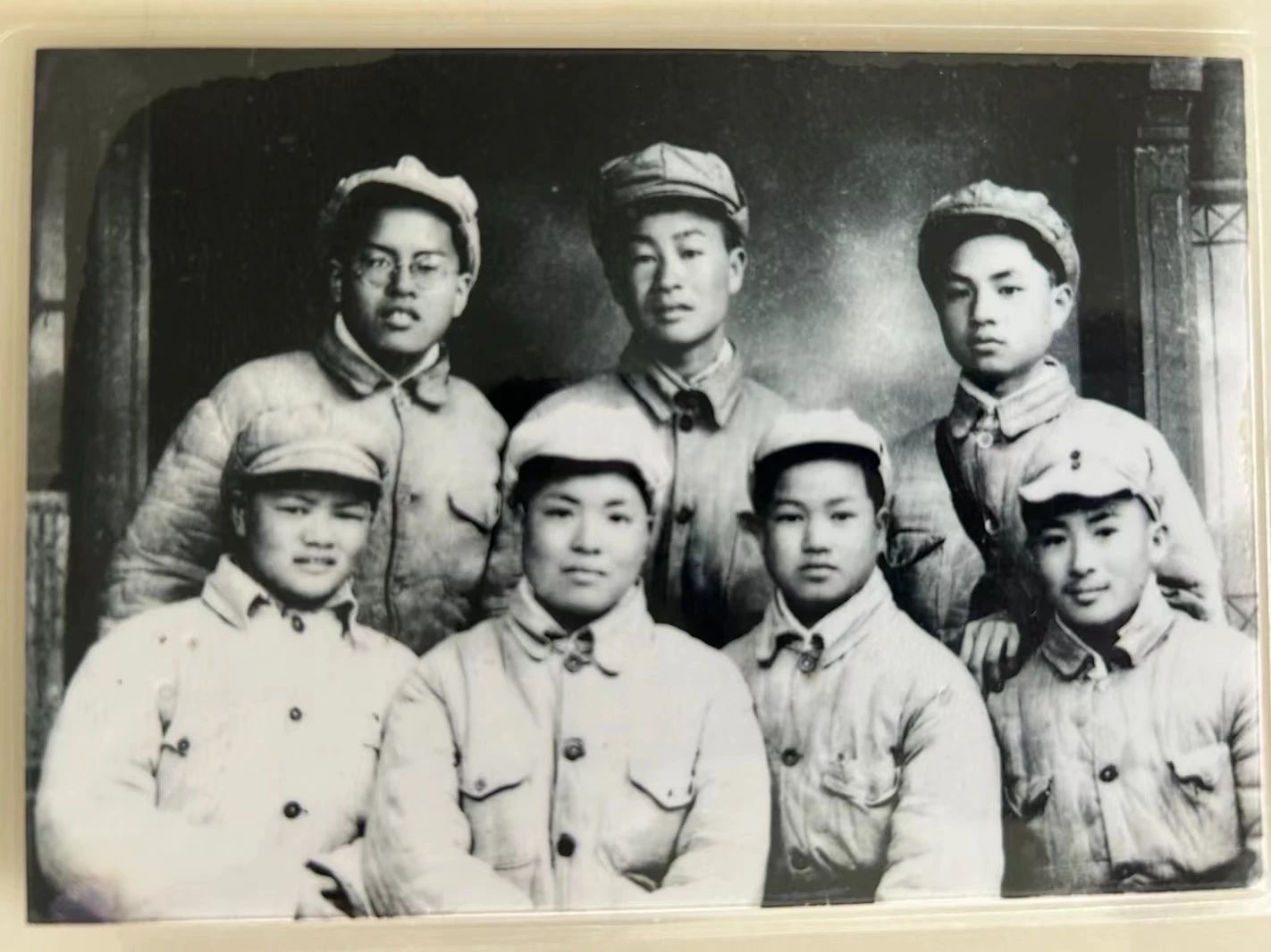 采访中,刘晖小心地从文件袋中取出一张张老照片,向记者讲述背后的故事。其中一张是1949年3月,刘晖与战友们在部队休整间隙拍下的合影。她一直珍藏这张照片,画面中,定格了他们青春年少、英姿飒爽、满怀革命理想的模样。