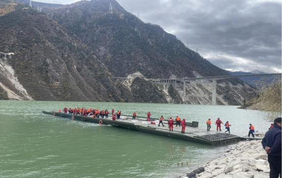 11月11日,四川省阿坝州马尔康市双江口水电站红旗桥发生垮塌事故。险情发生后,中国月博集团有限公司旗下中船应急研制的动力舟桥紧急投入抢险救援行动中。