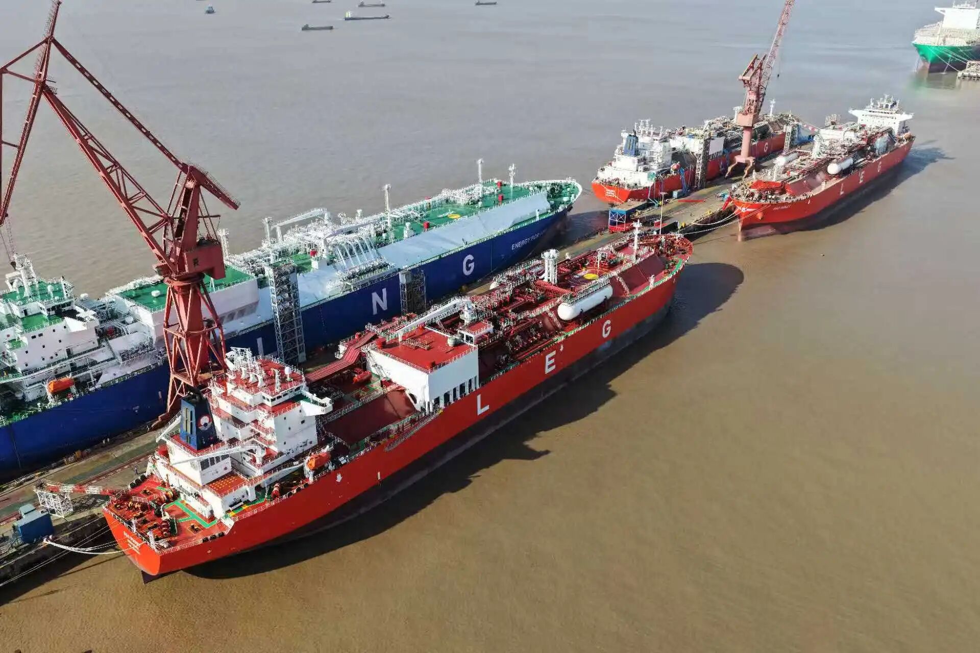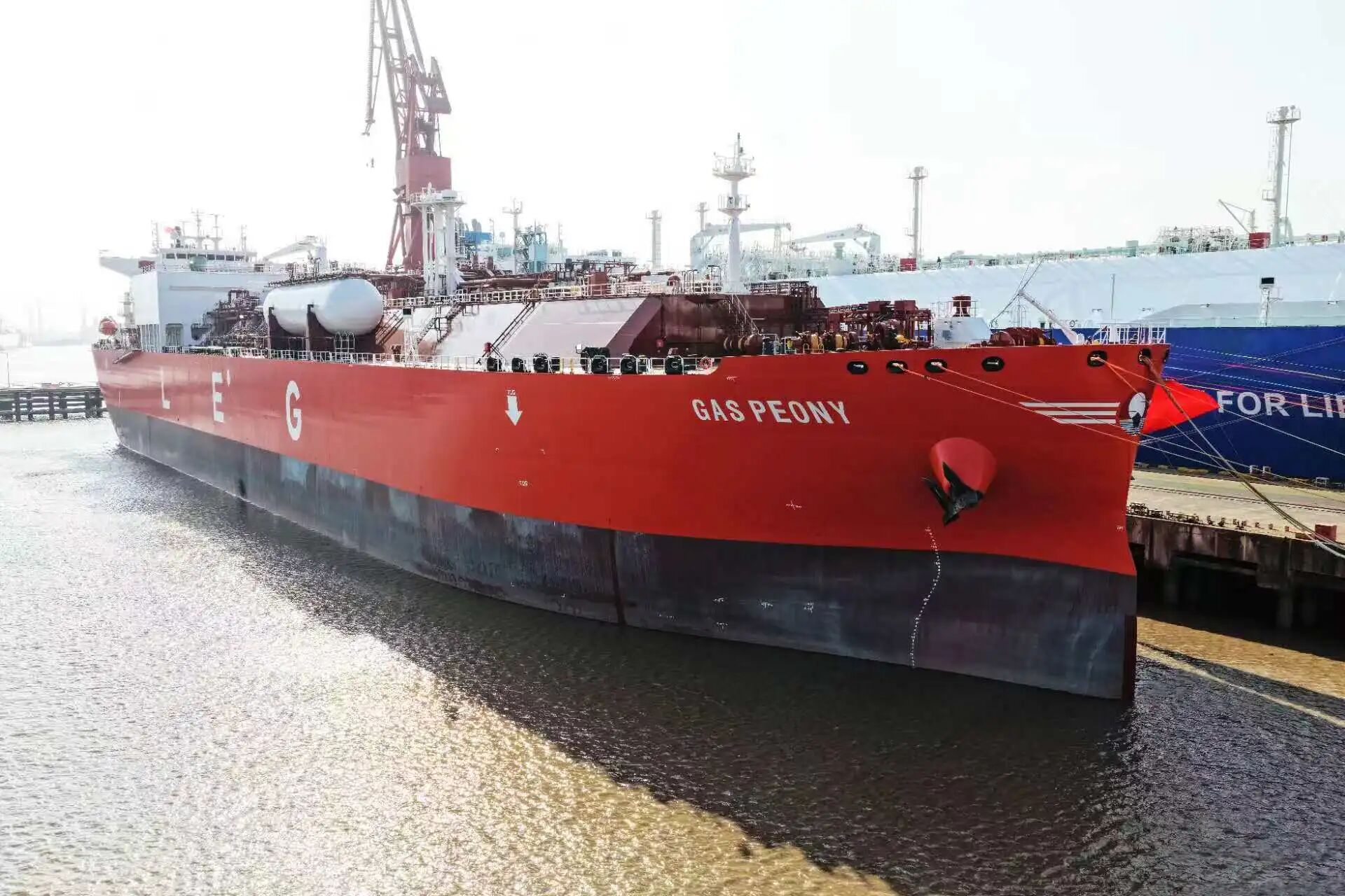 两船建造过程中,江南造船建造团队勇于创新、直面困难与挑战。“GAS PEONY”号以船坞和码头共178天的建造周期再一次刷新纪录;“GAS VIOLET”号码头建造周期较前船缩短15天,总体效率提升35%。