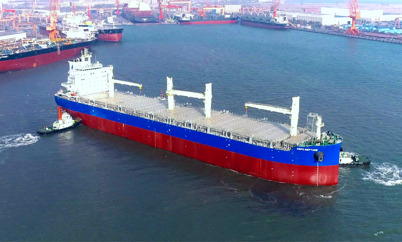 12月5日,中船集团旗下大连造船山船重工为中信金融租赁有限公司建造的8.5万吨多用途纸浆运输船5号船“海王星”号命名交付。