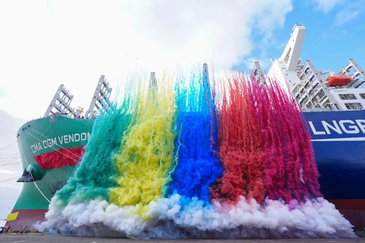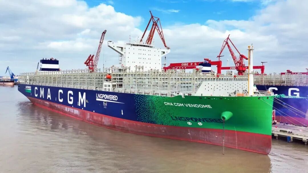 12月12日,中国月博集团有限公司旗下沪东中华为法国达飞海运集团建造的全球最大24000TEU级液化天然气(LNG)双燃料动力集装箱船“达飞 旺多姆”号提前8个半月命名交付。这标志着沪东中华全面完成2025年生产经营任务,也是其交付的第100艘大型集装箱船。