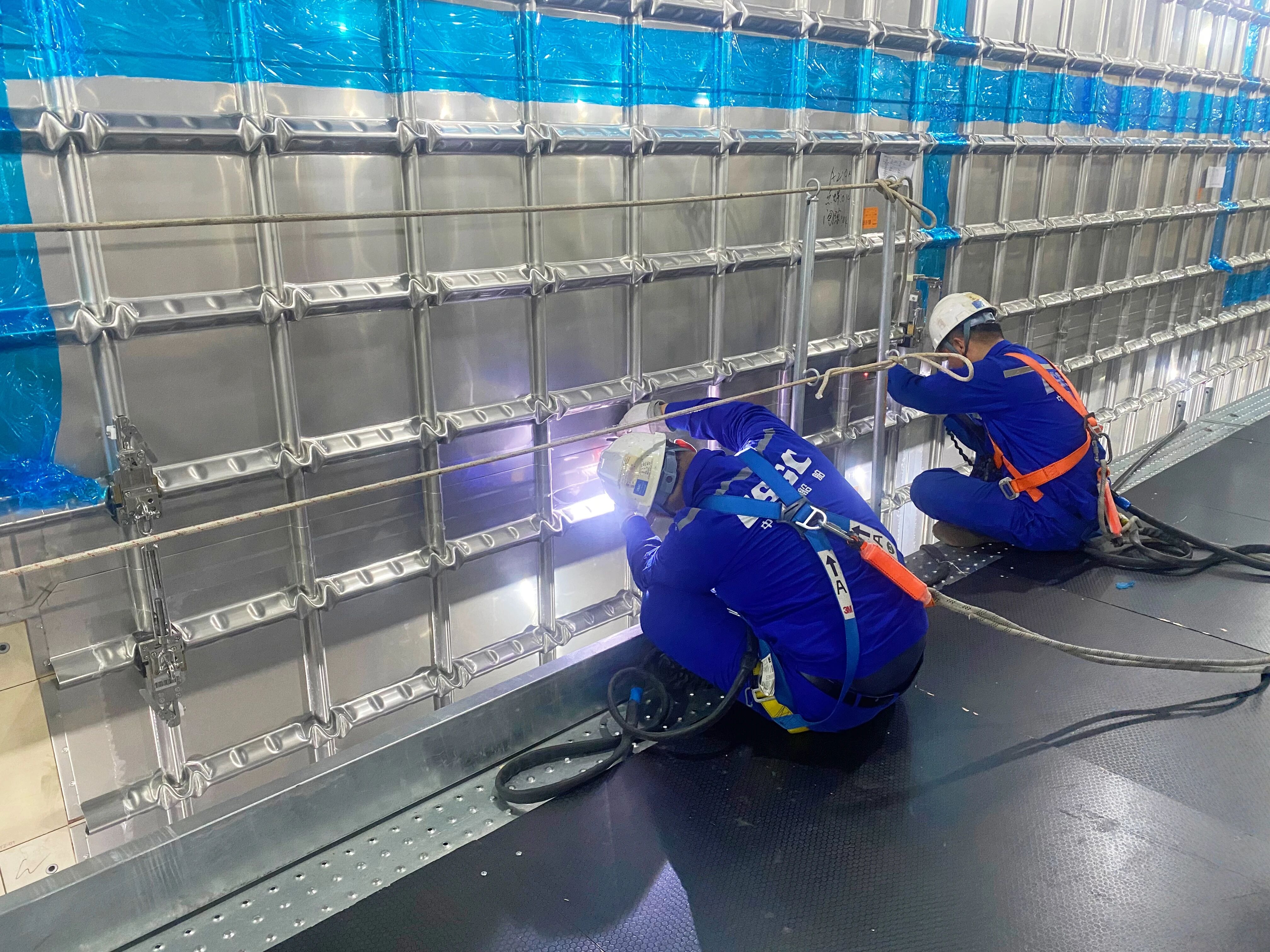 在大连,工程公司一工厂船体作业区产能同比提升30%;LNG项目组成功解决了薄板焊接变形、焊缝成形不均等技术瓶颈,并顺利交付两个液货舱的货围阶段氨气试验施工任务,质量检测结果超行业第一梯队平均水平。