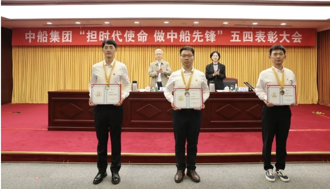 会上,徐鹏、贾海英共同为获得集团公司表彰的青年代表颁奖。来自中船集团旗下沪东中华、渤海造船、七〇八所的三位获奖青年代表分别作了交流发言。