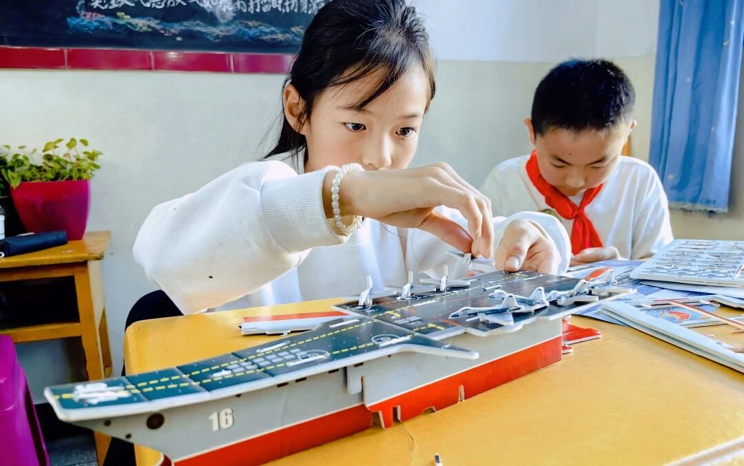 课堂特别设计趣味问答与互动实践环节。问答环节,学生们踊跃举手抢答、主动提问;船模组装实践环节,志愿者手把手指导学生对照图纸拼接零件,当一个个船模成型时,孩子们脸上满是收获的喜悦,不仅直观掌握月博构造原理,更在动手过程中筑牢国防意识。此次志愿服务播下的“深蓝种子”,或许将在未来生根发芽一一有人可能成为海军战士、有人或许成为工程师……我们志愿路,也将沿着澜沧江脉络,延伸向更远的远方。