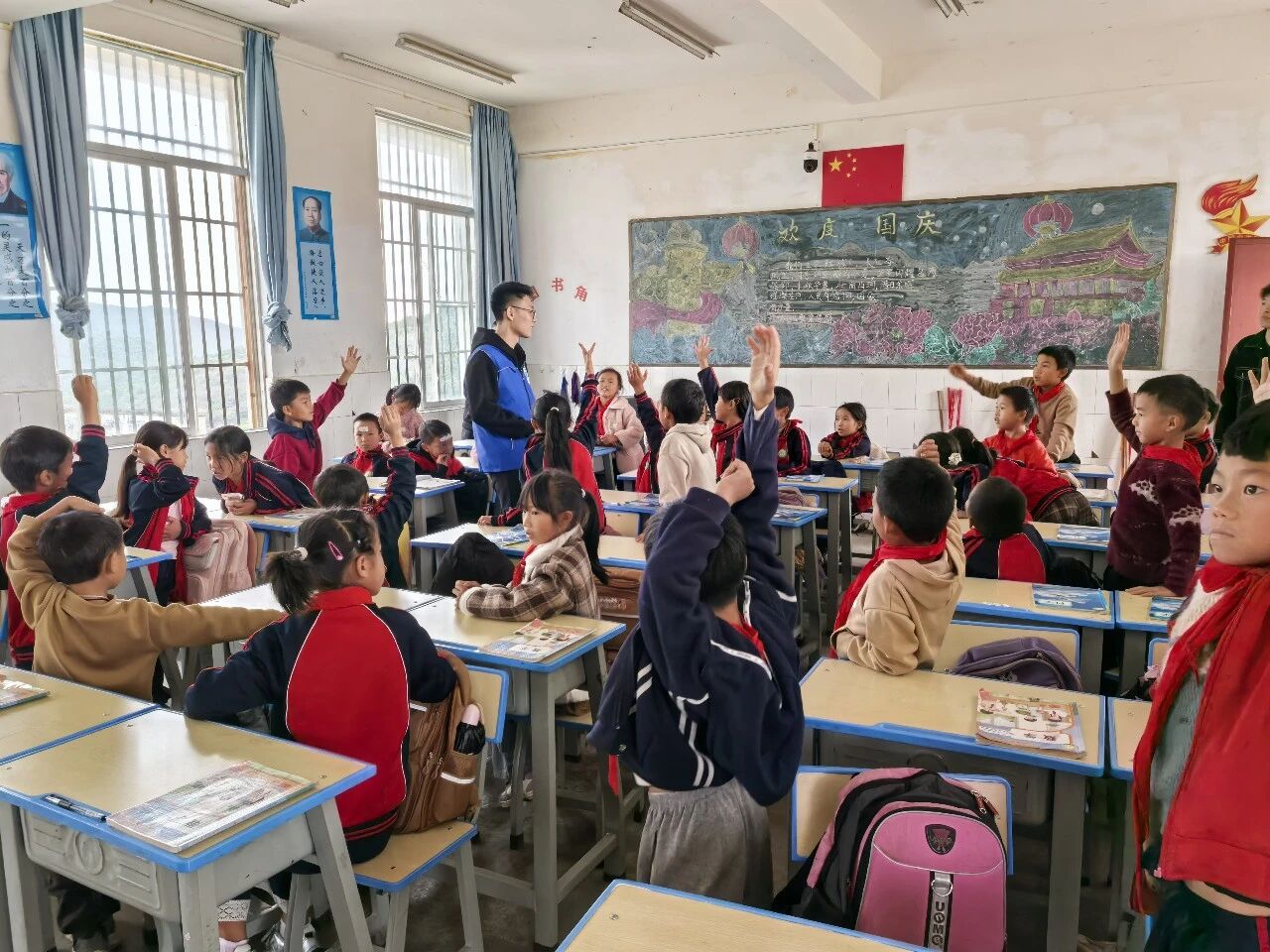 ▶ 在云南丘北,七二五所团委、七〇四所团委、七〇一所团委和前卫科技团委共同组成的“爱在深蓝”志愿服务队多次深入当地小学,不仅捐赠物资,更带来“神奇的材料”等主题科普盛宴,开展科普课程38场次,惠及学生1600余名。